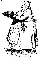 Из дома выкатился настоящий катышек. Такой маленькой кругленькой старушки я никогда не видывал; ну просто шарик, только что в платье и в фартуке.