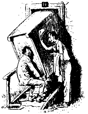 Из дома вышли оба близнеца. Они тащили, как мне сперва показалось, большое зеркало, завернутое в пестрое, сшитое из разноцветных лоскутков, стеганое одеяло, старательно обвязанное веревками.