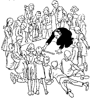 Ребята тотчас же вскочили. Их алые галстуки ярко выделялись на фоне серых курточек и коричневых платьиц.