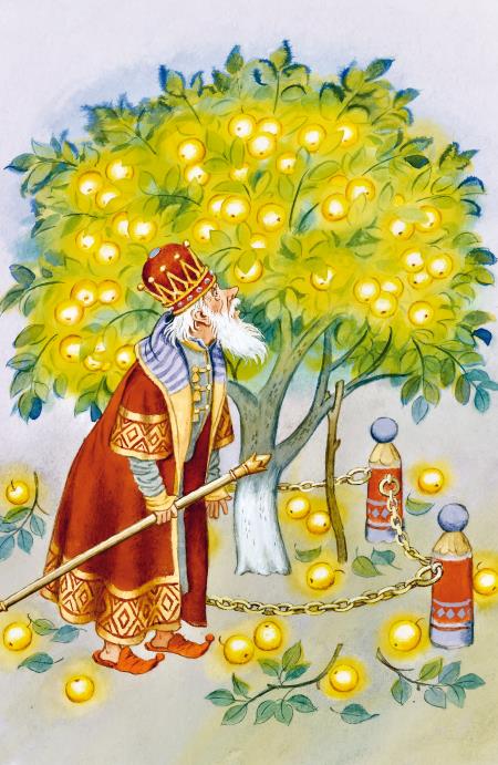 Жил-был царь Берендей, у него было три сына, младшего звали Иваном. И был у царя сад великолепный; росла в том саду яблоня с золотыми яблоками.