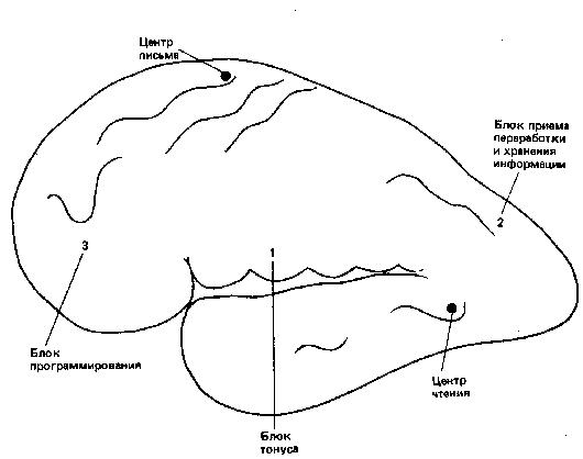 Современная нейропсихология выделяет три основных функциональных блока, три основных аппарата мозга, участие которых необходимо для любого вида психической деятельности человека, в том числе и чтения (рис. 3).