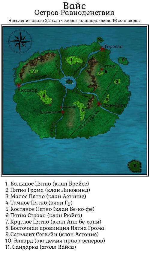 В зале совещаний на судне, принадлежащем Вайсу, собралось множество высокопоставленных лиц. Мирна Аушвейс, верховный Префект острова, устало помассировала виски, собираясь с мыслями. Многочасовые дебаты выпили из нее все соки. Среди наиболее важных лиц стоит также отметить премьер-министра Лемгена, Острова единения – тана Вильгельма Нэйманна, и уполномоченного представителя острова Джузенни, солнечного Острова – тана Эмьято Джакопо, племянника его королевского величества Басилио Джакопо. В который раз правитель острова солнца не явился лично на запланированную встречу. С другой стороны, его вполне можно понять – удерживать единоличную власть в таком крупном образовании как Джузенни со множеством врагов и завистников очень непросто. Вероятность различных покушений высока. Если не станет Мирны или Вильгельма, найдется, кому их заменить, и политика островов слабо изменится. Однако в Джузенни многое завязано на нынешнего правителя.