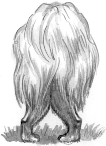 ЗАДНИЕ КОНЕЧНОСТИ ПЕКИНЕСА. ПРАВИЛЬНОЕ РАСПОЛОЖЕНИЕ ЗАДНИХ КОНЕЧНОСТЕЙ: ОНИ НЕ ДОЛЖНЫ РАСПОЛАГАТЬСЯ НИ СЛИШКОМ БЛИЗКО ДРУГ К ДРУГУ, НИ СЛИШКОМ ДАЛЕКО