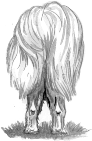 Шерсть: длинная, прямая, с обильной гривой, опускающейся за пределы плеч, образующая пышный воротник вокруг шеи. Остевая шерсть достаточно грубая, с густым подшерстком. Обильная шерсть на ушах, задней стороне конечностей, хвосте и пальцах.
