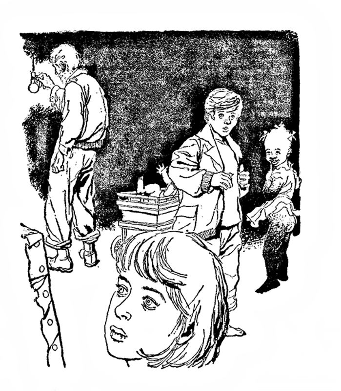 В комнате было полно детей. На первый взгляд их было всего трое, только почему-то казалось, что их куда больше. Девочка моих лет – восьмилетняя то есть – с пятнышком синей краски на щеке. Перед ней стояли мольберт и палитра, целый пучок разных кистей, но она ими не пользовалась – мазала прямо пальцами. Потом была еще маленькая негритяночка, чуть старше пяти лет, она глядела на меня большими глазами. В деревянной колыбельке на козлах располагался младенец, месяцев трех или четырех от роду. Обычный младенец, который гулил, пускал пузыри, болтал ногами и руками.