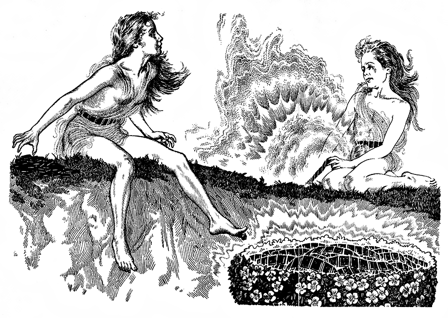 Брил смущенно и презрительно фыркнул и стал смотреть, как двое детей ловко мастерят пояса - играючи, беспечно и легко, через минуту, вот так же играючи, они начнут плести венки. Скрепив камни друг с другом, ребенок ударяет готовым поясом по тому, которым опоясан сам. На миг вспыхивает холодным ярким пламенем многоцветная радуга. И пояс, окаймленный теперь короткими язычками переливчатого света, бросают в корзину.