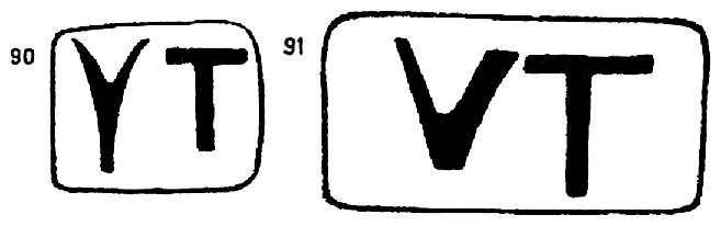 99 — (рис. 76д). В Керч. музее — 22 (7/15) экз., все расположены исключительно на калиптерах, причем два клейма (фрагментированные) имеют неправильное расположение букв справа налево. Орешников у Гиля, стр. 41, № 10; Шкорпил, 1903-5, № 457; Шкорпил, 1906-7, № 809; Придик, Каталог, стр. 129, №№ 27–32. Орешников, в своем сообщении о боспорских клеймах, помещенном в сочинении Гиля, трактовал (стр. 42) клейма и как обозначения имен собственных (sic!).