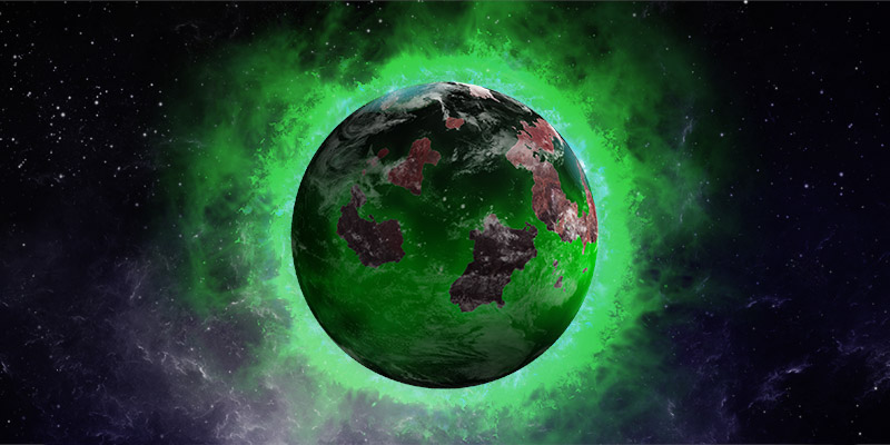 Большая планета, почти вдвое больше Земли, Каррон, парил в обертке из зеленой атмосферы. Это был не жизнерадостный травяной цвет, намекающий на буйство растений, и не голубовато-зеленый цвет мелководных океанов и живительной воды. Нет, это был глубокий болезненный оттенок зеленого, цвет, который можно найти в видеоигре, ассоциирующийся с нежитью. Под зеленью очертания континентов цвета ржавчины огибали планету, прерываясь на полюсах бескрайними безмятежными морями.