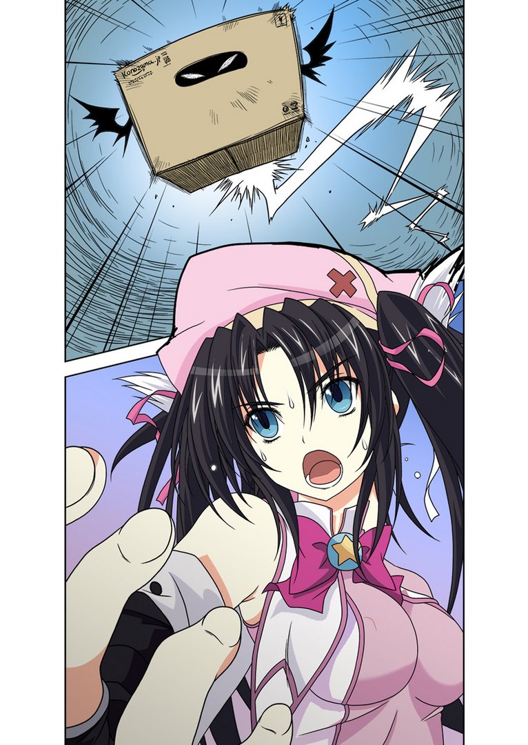 Ох, эта картонная коробка быстро двигалась в воздухе, уклоняясь от демонической энергии Леви-тян. А затем коробка на скорости протаранила девочку-Владыку Демонов.