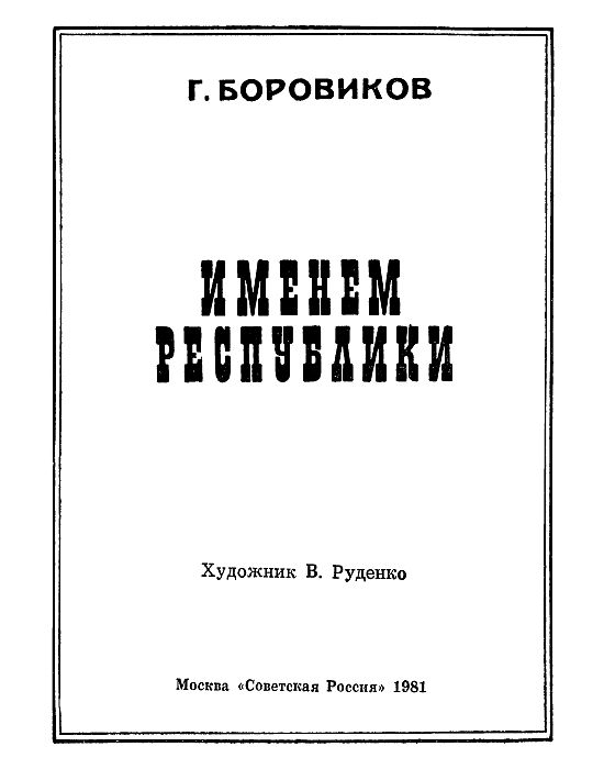 Предлагаемая вниманию читателей повесть «Именем Республики» написана по впечатлениям моей юности.