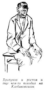 Хрипунов, такого же роста и с той же наклонностью к полноте, как Клебановский, чем-то походил на него, особенно если смотреть сзади. Но усов он не носил и был несколько моложе. Его серенькое личико с мелкими чертами лица и вздернутым носиком было бы совсем неприметным, тусклым, стертым, не обладай Хрипунов парой довольно примечательных глаз. Светло-голубые, с преждевременными подглазинами, они сверлили, как буравчики. Их обладатель, как видно, знал неприятное для собеседника свойство своего взгляда и в разговоре или скромно смотрел в сторону, или ловко прятал глаза под полуопущенными тяжелыми веками.