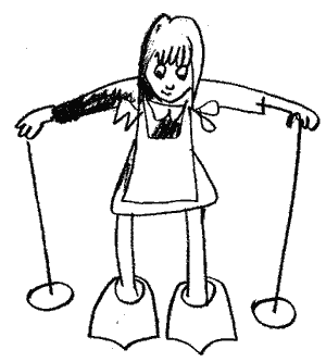 Вечером мы с мамой и тетей Лизой пошли в детский мир. Мама и тетя Лиза крепко держали меня за руки, чтобы я не потерялась. И вдруг у меня ужасно зачесалось правое ухо! Я стала выдергивать свои руки. Но мама и тетя Лиза только сжали мои руки покрепче. Тогда я постаралась почесать ухо правой ногой. Но не дотянулась… И мне пришлось изловчиться и почесать правое ухо как раз левой ногой.