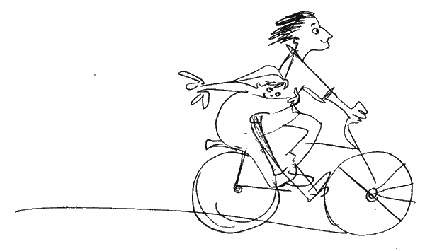 Мы выехали в поле. Подул ветер. Я прижалась ухом к спине хулигана и услышала, как бьeтся его хулиганское сердце. Стало темнеть. Река всe не расширялась и не расширялась, и попутных кораблей что-то не было видно. Я вспомнила про маму, тeтю Лизу и кота Арбузика. Как они ждут меня, смотрят в окошко, а потом плачут, звонят в милицию, скорую помощь и пожарным тоже на всякий случай.