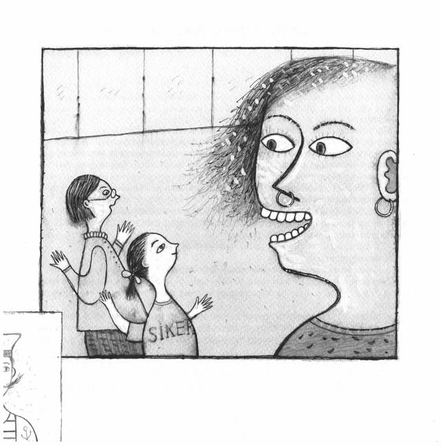 А тётя с зелёными волосами ласково так своими большими зубами улыбается и говорит: