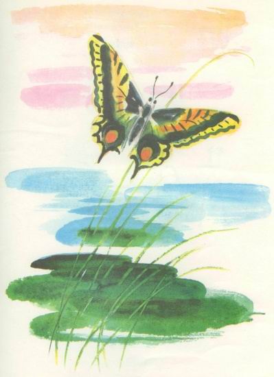 Несколько мгновений дед и внук стояли молча, затаив дыхание. Первым не выдержал внук. Он снял с головы кепку, пригнулся к земле и неслышно стал подкрадываться. Но когда до бабочки оставался всего лишь шажок, мальчик споткнулся о корень и полетел в яму, заросшую лопухами и жгучей крапивой.