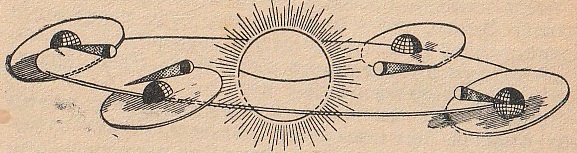 Рис. 6. Плоскость, в которой движется Луна вокруг Земли, не совладает с плоскостью, в которой движется вокруг Солнца Земля.