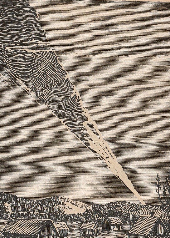 Рис. 13. Падение Сихотэ-Алиньского метеорита (с картины очевидца художника Медведева).