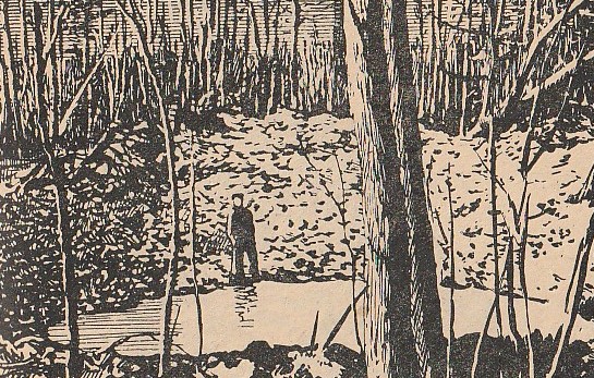 Рис. 14. Одна из воронок, образовавшихся на месте падения Сихотэ-Алиньского метеорита (с фотографии Е. Л. Кривова).