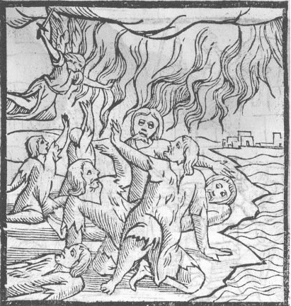 Спустя годы, все также жили эти гиганты на этом месте; но так как им не хватало женщин, а местные жители не подходили им по росту, или потому что было грехом использовать их, по наущению и подстрекательству зловредного дьявола, прибегали они между собой к гнусному содомскому греху, столь тяжкому и ужасному. Они предавались ему и совершали его открыто и публично, не боясь Господа, и сами не стыдясь этого. И все местные утверждают, что Господь Иисус Христос, не желая притворяться незамечающим столь тяжкий грех, послал им кару сообразную сему постыдному греху.