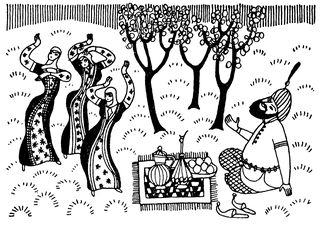 В раю, которым заведует бог мусульман Аллах, текут молочные, медовые и винные реки. Жители этого рая с утра до вечера лежат в тени деревьев, пьют, едят и любуются танцами красивых девушек. У каждого жителя этого рая сотни послушных слуг. На головах у них постоянно надеты золотые венцы, украшенные жемчугом и бриллиантами, на ногах — атласные туфли. От райского вина они не пьянеют, и, сколько бы они ни ели, у них никогда не пропадает аппетит.