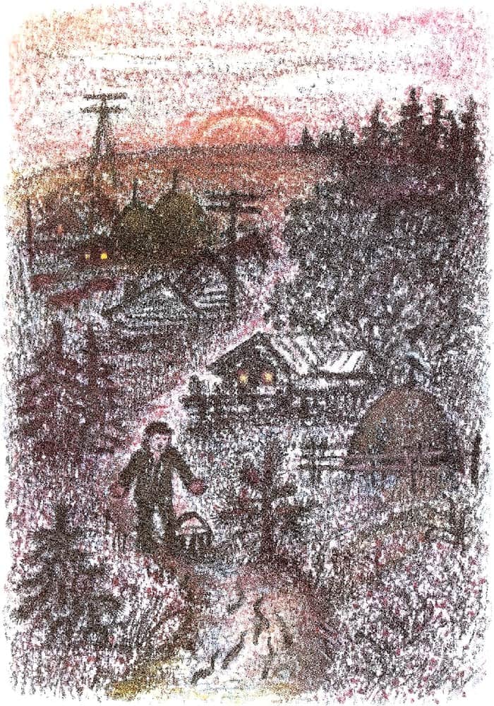У самой деревни вдруг почувствовал, что корзина стала очень уж лёгкой. Заглянул в неё — и ахнул: ни одного вьюна! Что за чудо? Глядь назад, а на дороге в пыли барахтается что-то. Подошёл. Вьюн! Вот те раз!..