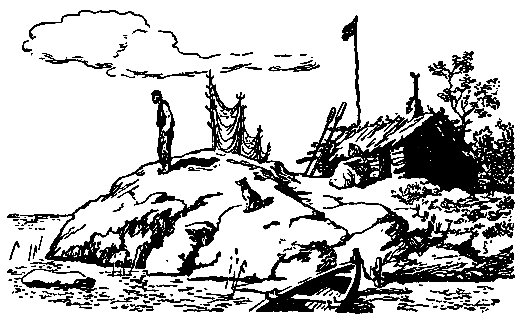 Зимовали они в маленькой хижине на берегу моря, а весной переселялись на скалистый островок и жили там до глубокой осени. На этом островке была у них лачужка - ещё меньше, чем на берегу, - с деревянной щеколдой вместо замка и с плитой, сложенной из дикого камня. Зато крыша лачужки была украшена флагштоком и флюгером, как дома настоящих моряков.
