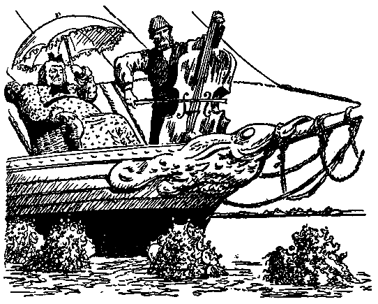 И, не откладывая дела, она приказала грузить корабль камнями и песком и вместе со всеми работниками и даже музыкантом выехала в море.