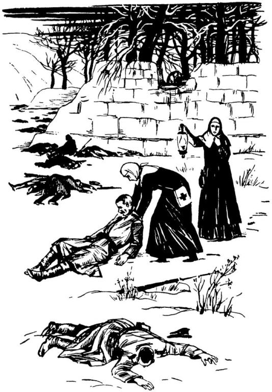На поле остались раненые и убитые. Груня с другими сёстрами милосердия и санитарами продолжала разыскивать раненых. Одних перевязывала на месте, другим помогала добраться до лазарета.