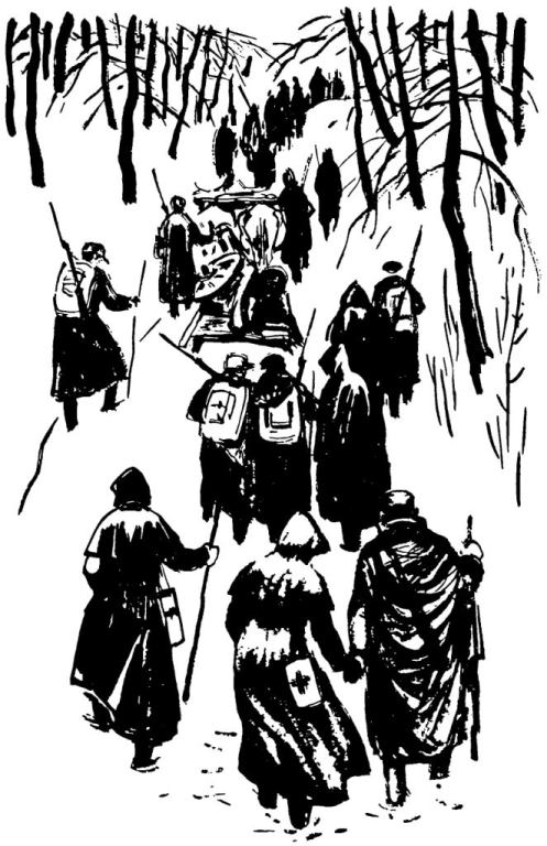 Тяжело было в этом походе солдатам, но ещё тяжелее сёстрам милосердия, которые неотступно следовали за отрядом. Непрерывно требовалась их помощь: то перевязать раненого, то поддержать ослабевшего, напоить чаем продрогшего от холода. В то же время и самим надо было удержаться на ногах, не упасть, не ослабеть. Идти и идти вперёд.