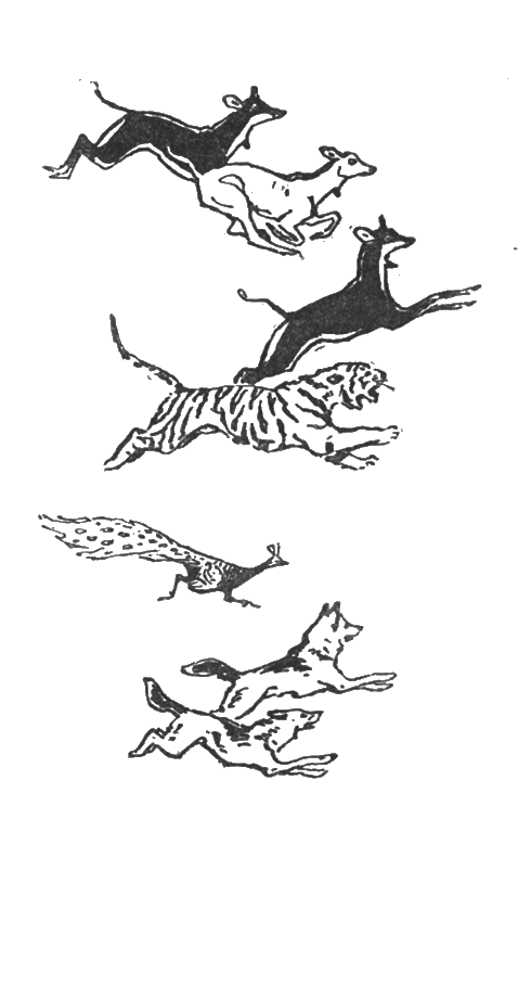Когда исходила луна, мы видели большую черную тень, слышали ворчание и рык — это тигр крался мимо дома. Он проходил под моим окном, и глаза его то становились зелеными, то рдели в ночи, как два граната. Он понимал, что до меня ему не добраться, и исчезал. Так повторилось каждую ночь во время засухи, когда голод и жажда выгоняют диких зверей из их логовищ, и они близко подходит к людскому жилью.
