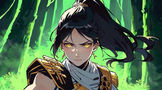 Она была невообразимо красивой. Черные, словно вороново крыло волосы, стянутые золотой ленточкой в хвост, оставляли на лбу длинную челку, разделенную на несколько прядей. Тонкие и острые брови, подчеркивали большие глаза, цвет которых был не просто желтым, а сиял самым настоящим золотом. Она была одета в простой белый хитон с золотыми заклепками, но выглядела как самая настоящая принцесса, лет семнадцати, от которой просто невозможно отвести взгляд.