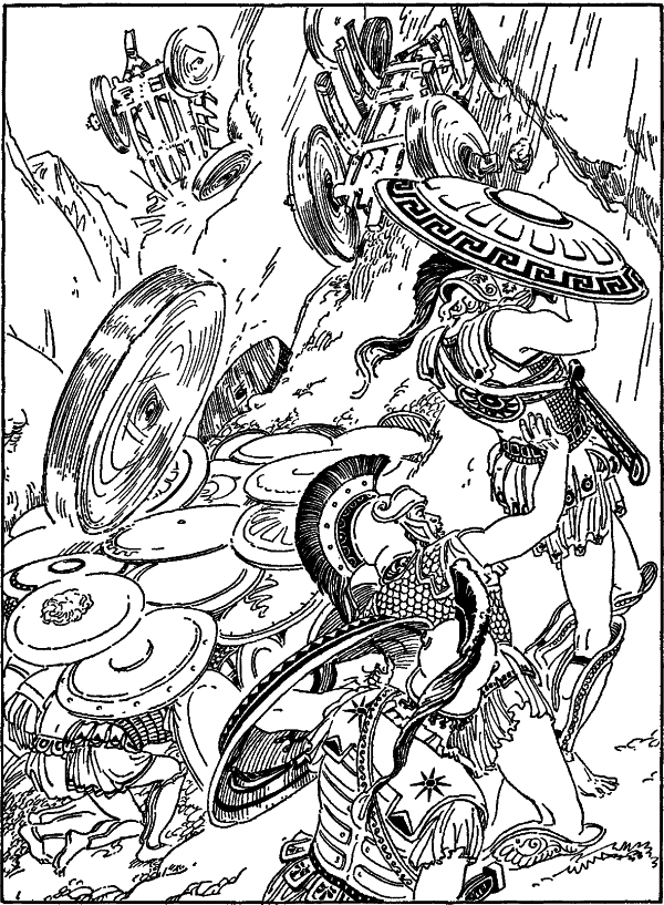 Но что же это? Фракийцы с ужасом увидели, что их повозки никому не причинили вреда. Они катятся вниз, в ущелье, кувыркаясь и распадаясь на части. Македоняне расступились и пропустили их. А где некуда было отступить, они вдруг, укрывшись щитами, превратились в большую черепаху, и повозки лишь прогрохотали по железу.