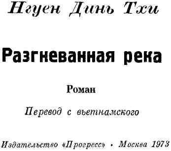 Теме народной борьбы против колониального господства посвящена двухтомная эпопея известного вьетнамского писателя и общественного деятеля Нгуен Динь Тхи. Первая часть дилогии «Рушатся берега» была выпущена издательством «Прогресс» в 1970 г., вторая — роман «Разгневанная река» — предлагается вниманию советского читателя. Названия обеих частей перекликаются с народной пословицей.