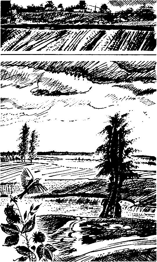 Зато можно было взамен глядеть на все другое, многое, и он глядел и помнит, каким всё новым было и молодым, даже и старое. Широкая ровная улица досталась ему, с поля огражденная где взгорками ковыльными, где пойменной высокой зарослью с тяжелыми горластыми грачами, с огородными полянами тихими, открытая к реке. Тополя вставали на задах, и высоко возносились меж них проёмы, сквозные столбы воздуха, то светом косым просвеченные, то пробитые дождем, осенью просторные, пустые. Близкая соломенная крыша, скворечник одинокий на жердине у соседей, колодезный журавль с деревянной серой, обглоданной непогодами шеей — все вверх тоже лезло, хотело вровень с облаками плыть, но тут же и выдыхалось, останавливалось либо закруглялось, бессильное. Какой-то предел, запрет был там; вроде б нигде и не видно было его, а туда не пускал. Птицы — и те с видимым трудом превозмогали его, лишь коршуны одни, зловеще отдаленные, отрешенные от всего, были там свои, стерегли высоту, парили, иногда насовсем пропадая в ней, другое так не могло.
