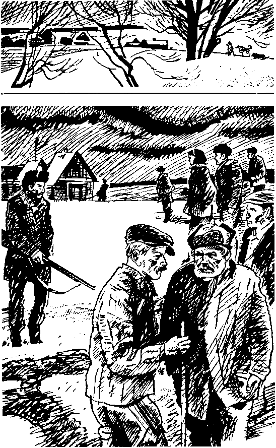 Гришук разом забоялся, остановился, пережидая, пока вся эта разношерстная компания пересечет дорогу, стал разглядывать их — бежать было никак нельзя, потому что собаки тогда непременно вслед кинутся, хотя бы из-за любопытства; да и разве убежишь от них на чисто заснеженной, только кое-где в кулижках старой полыни пажити, когда до уличных ветел триста с лишним, а то и все четыреста пустынных метров… Он сразу же узнал бежавшую чуть впереди стаи Волну — кокетливо белую, несмотря на бродяжничество, с ладной, по-собачьи умной и внимательной ко всему встречному мордой, хозяйку и праматерь всех обитателей скотомогильника; а рядом — немного позже, уже со страхом и смятеньем, с гадкой слабостью в ногах — пегого крупноголового кобеля по прозвищу Лютый, завидя которого любая домашняя собака либо зазывно и подданно скулила, егозя спиной и скашивая уши, либо поджимала хвост и опрометью бросалась к подворотне… Гришук тихо завернул и, млея от ужаса и стараясь не махать руками, пошел, не оборачиваясь, прочь от собак, сам того не замечая, все быстрее и быстрее, лишь об одном думая — только б не побежать…