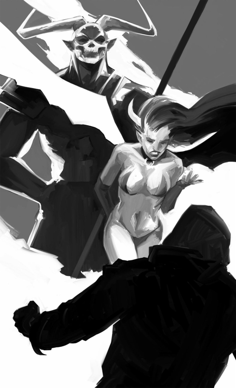 Вдруг из-за спины Гарртака вышла демоница с лиловой кожей и зашептала, и шёпот её пробирал до костей:
