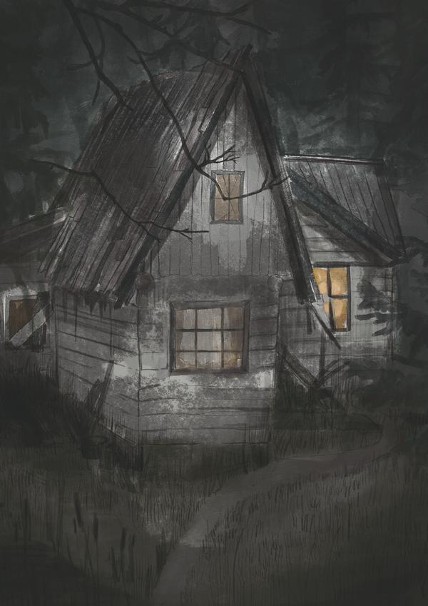 Наконец я перебрался через это болото, взобрался на маленький пригорок и теперь мог хорошо рассмотреть хату. Это даже была не хата, а именно сказочная избушка на курьих ножках. Она не касалась полом земли, а была построена на сваях, вероятно, ввиду половодья, затопляющего весною весь Ириновский лес. Но одна сторона её от времени осела, и это придавало избушке хромой и печальный вид. В окнах недоставало нескольких стёкол; их заменили какие-то грязные ветошки [25] , выпиравшиеся горбом наружу.
