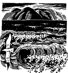 И по простору этому, где нет никаких вех, только зыбистая вода, с цепкой точностью ведет он вельбот к полосе наката, прислушиваясь к мотору, к шипению пены, к гулу далекого прибоя. И еще хватает у него силы перекинуться взглядом с мотористом и даже сказать любимое свое присловье: