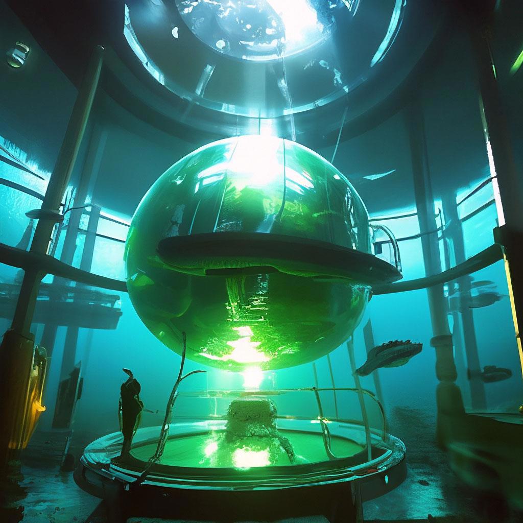 Посредине пустоты и тьмы океана повис гигантский светящийся изумрудным шар. Хотя, скорее всего, он просто казался нам таковым из-за преломления света сквозь воду и стекло... Какое еще преломление? Это ж экран... Но пусть будет так. Картинка в любом случае эффектная. У шара виднелся отсек для стыковки. Нам было явно туда.