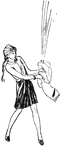 Надо же было случиться, чтобы Витина ложечка попала как раз папиному заведующему отделом. И когда он стал размешивать сахар в чае, то увидел вдруг, что в руках у него только ручка от ложечки, а сама ложечка расплавилась и серебристо-черным слоем лежит на дне стакана. Все стали смеяться и довольно подозрительно рассматривать свои ложечки. Мог бы, конечно, посмеяться и папин начальник — ведь ничего страшного не произошло, сплав этот не ядовит и не имеет никакого вкуса или запаха. Но папин начальник, по-видимому, относится к числу людей, которые любят посмеяться над другими и совершенно не переносят, когда смеются над ними. Он покраснел так, что уши у него стали фиолетового цвета, как будто их об-лили чернилами, и сказал, что никогда себе не позволяет шуток над своими гостями и поэтому не любит, когда шутят над ним, если он приходит в гости. В общем, и папе и маме было очень неприятно, а к тому же, когда я увидела уши папиного начальника, я почувствовала, что просто лопну, ну, по-настоящему лопну от смеха. Я понимала, что смеяться неприлично, что смеяться над взрослыми нехорошо, но ничего не могла с собой сделать, пока не применила способ, который посоветовал мне когда-то Витя: если рассмеешься в школе на уроке и чувствуешь, что не можешь остановиться, нужно схватить что-нибудь острое булавку, иголку, циркуль и посильнее уколоть себя в ногу, ниже коленки, куда врачи стукают молоточком. От боли или еще от чего-то смех сразу проходит. У меня под рукой не было булавки, я незаметно ухватила штопор и кольнула себя ниже коленки, да так сильно, что пошла кровь. Я залепила ранку краешком бумажной салфетки, и мне уже было не до смеха.