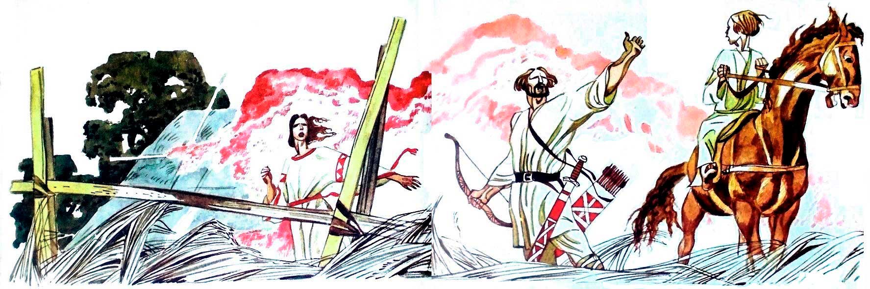 Добрило-пахарь вскочил на ноги. Куда уж тут раздумывать Надо в крепость знак подать. Самим спасаться некогда.