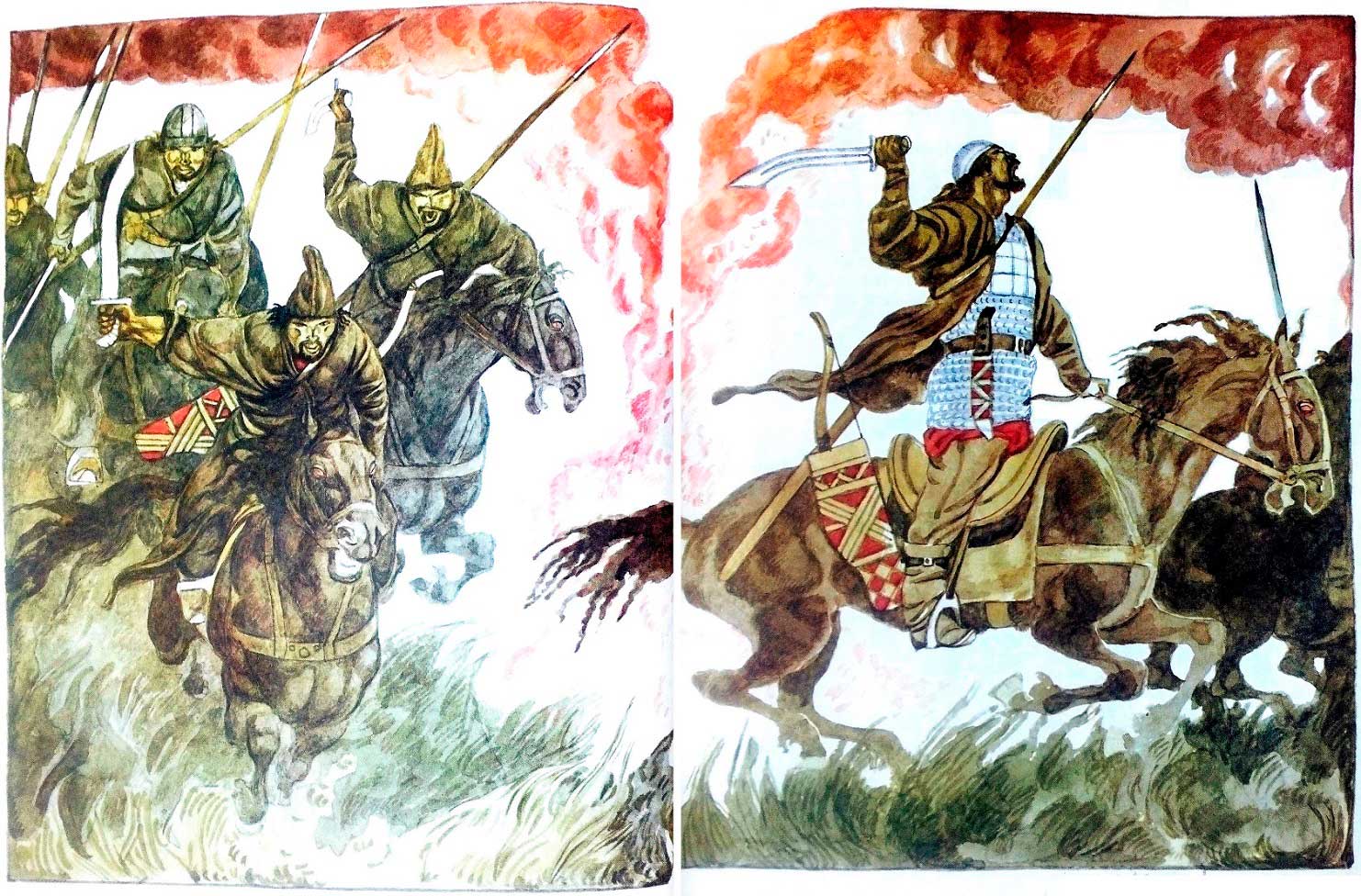 Так оно и шло дальше все дни. Куда ни добредёт усталый конь, там перед глазами только дым да пепел. Видно, целая тьма врагов навалилась на их край! Не сумели отбиться малые крепости… Плач и стон стояли окрест.