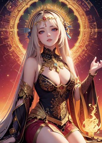 Сенти подошла к стене и отдернула плотные бархатные шторы, которые закрывали портрет прекрасной женщины с голубыми глазами, длинными светлыми волосами и сложной аурой, пылающей за спиной. Вексель невольно сглотнул. Предчувствия не обманули его — богиня действительно выглядела ошеломительно.