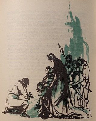А тут опять третий сосед на свадьбу зовет. Очень царю ехать не хотелось, — не до того ему было, но как стал его царевич просить, чтобы на свадьбу поехать, ради него согласился. Приказал царевич своим людям котлы смолой наполнить, в день свадьбы ту смолу растопить и, как стемнеет, дорогу ею залить, и отправился с отцом на свадьбу.