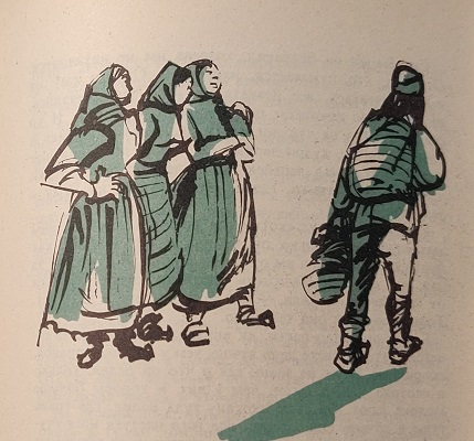 Гонит это пастух скотину на водопой, а они с ним заговаривают. Только он на них и не смотрит, как будто не знает, чего им. от него надобно. В отместку за это они его «красавчиком» прозвали, отворачиваться от «красавчика» стали, — им, мол, до него и дела нет. Только вряд ли оно так было.