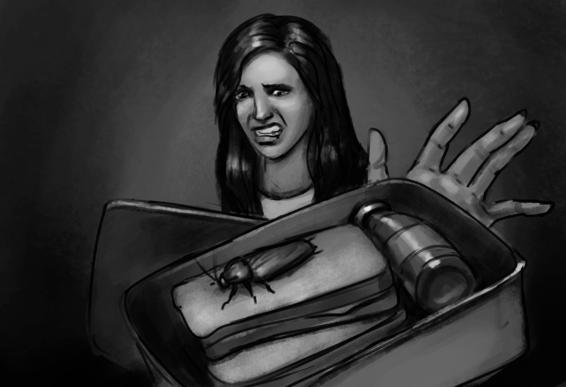 Таракан был жирной, отвратительной тварью. Он беспокойно зашевелился, когда свет проник в коробку, и спрятался под пластиковой прокладкой из белого хлеба. Этот вызывающий рвотные позывы жук был уже совсем взрослым, с толстыми красновато-коричневыми крыльями, расположенными на спине. Он напугал меня, когда вдруг захлопал ими и стал шумно метаться вокруг моего обеда.