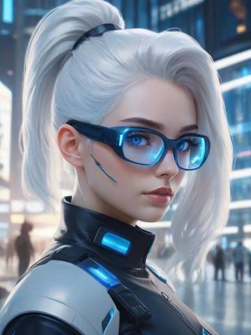 Она глянула в нашу сторону. И я не смог сдержать нелепой улыбки, которая, к слову, нравилась девушкам. У неё белоснежные волосы были заделаны в хвост, только длинная чёлка была распущена и спускалась вниз по левой стороне лица. Высокий лоб, густые брови, при этом тёмные. Что очень сильно выбивалось, но при этом заставляло зацепиться взглядом. И при этом что волосы, что брови имели естественный оттенок, некрашеные волосы. Голубые большие глаза, даже без макияжа, что редкость. Широкие скулы, под одной из них, ближе к нам, прослеживалась полоска имплантата. Узкий, немного вздёрнутый носик. Приятного вида губы, не пухлые, но и не тонкие. Узкий подбородок, узкая челюсть.