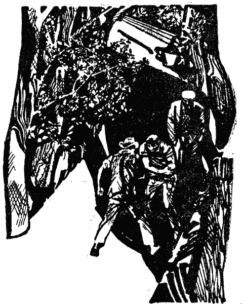 Рудаков остановился, чтобы прикурить. Доставая сигареты, он краем глаза заметил, что из кустов, сзади, вынырнули две темные тени и двинулись по направлению к нему. «Влюбленные…» — подумал Рудаков, зажег спичку, прикурил и стрельнул ею в монументальную бетонную урну. Шаги приближались. «Не за мной ли идут?» — снова подумал Рудаков. Чья-то рука легла на его плечо.