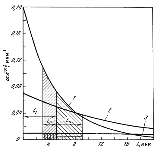 Оптические излучения различных длин волн проникают на разную глубину (поскольку эта величина существенно зависит от энергии квантов) и создают свое пространственное распределение рожденных светом пар электрон — дырка (см. рис. 2.1).