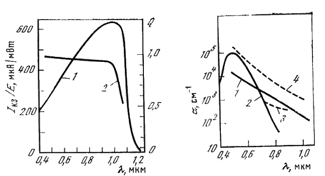 1 — монокристаллический; 2 — нелегированный аморфный с водородом; 3,4 — аморфный n- и р — типа соответственно